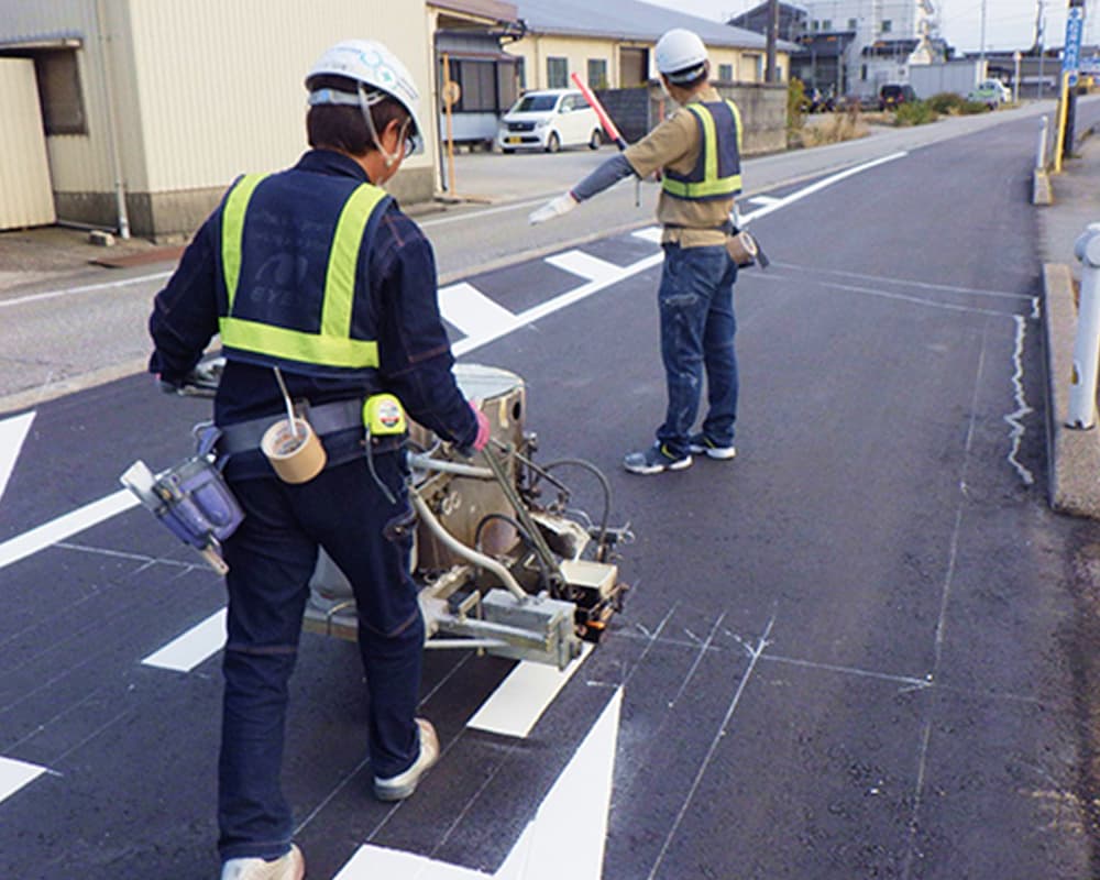 人々の安全・安心な移動を支えるため、交通インフラ整備を総合的に手掛けています。駐車場や道路の区画線・標示、ガードレールや標識などの交通安全施設の設置、そして構造物の塗装まで、「交通」に関するあらゆる専門工事をワンストップで提供します。